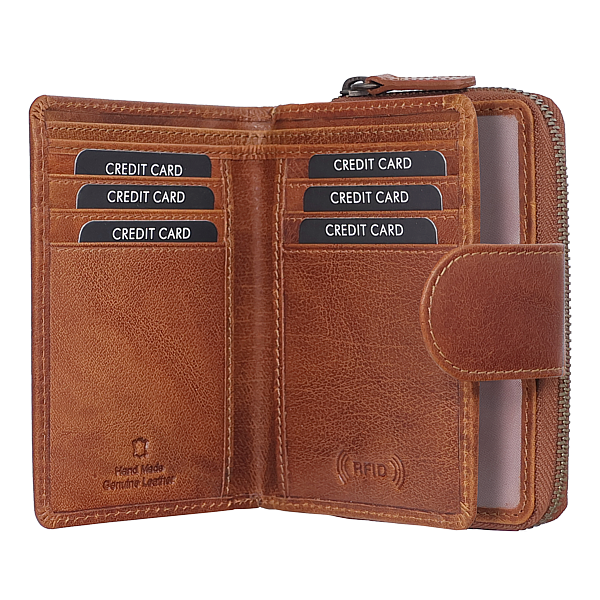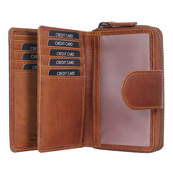 innen 4teilig, 14 Kartenfächer, 2 Sichtfächer, Reissverschlussfach, gewachstes Wasserbüffelleder