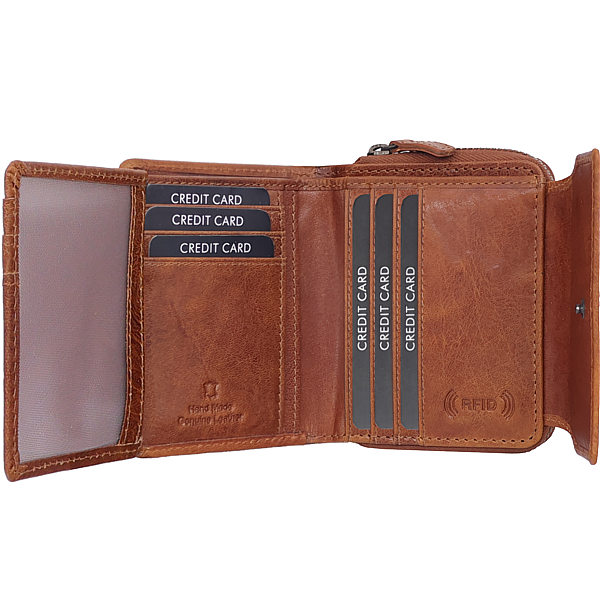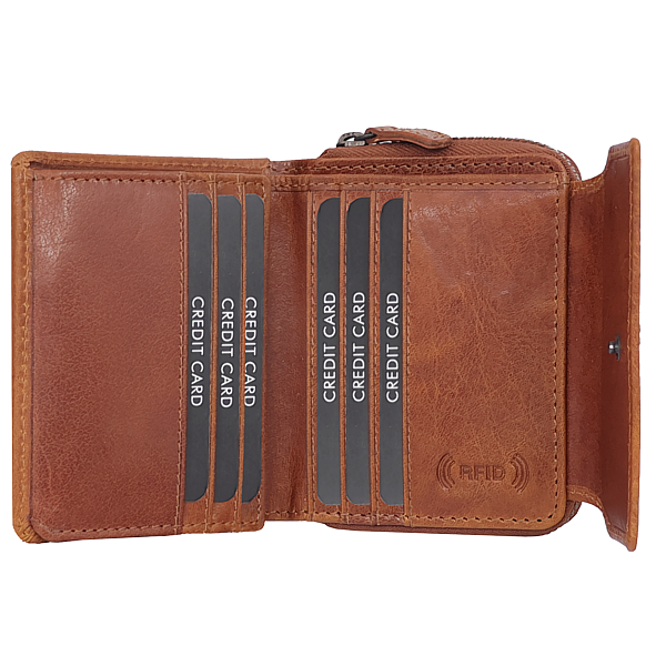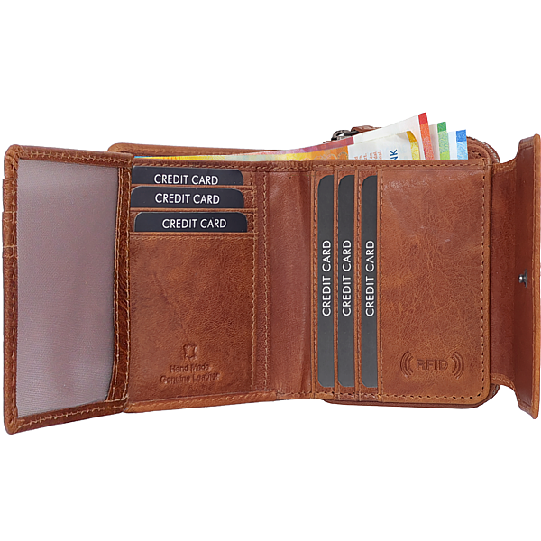 8 Kartenfächer, RFID safe, 2 teiliges Reissverschlussfach, geöltes Vollrindleder