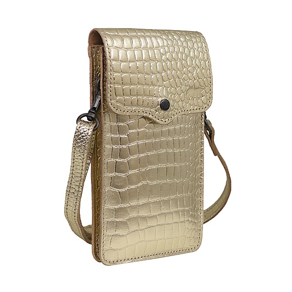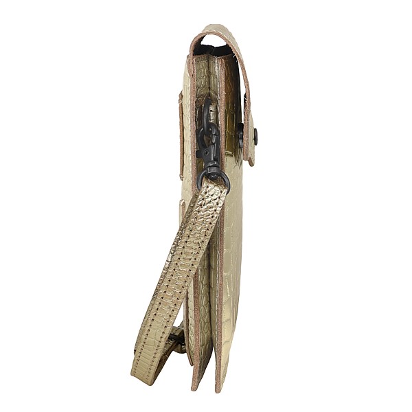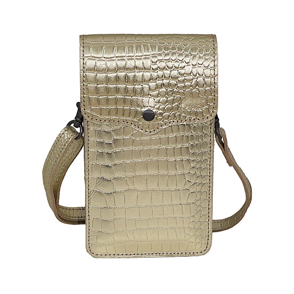 11 x 18.5cm, abnehmbares Schulter-/Hüftband, Vollrindleder metallic