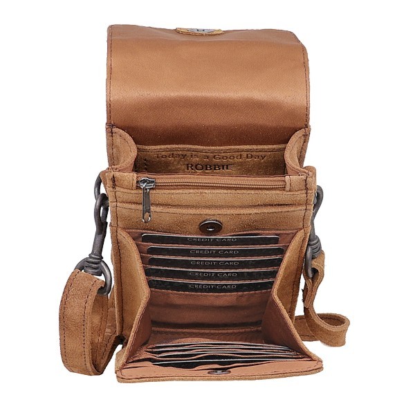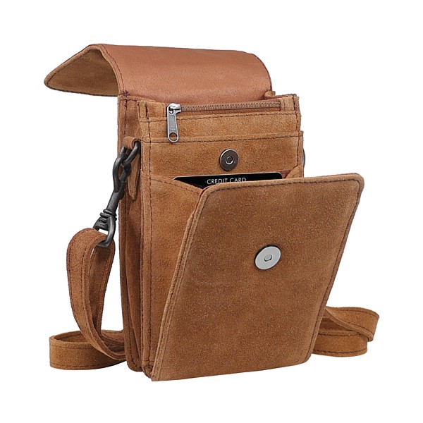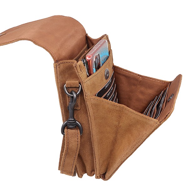 12 x 20 x 6cm, abnehmbares Schulterband, Gürtelschlaufe, 10 Kartenfächer, Smartphonefach, Veloursleder