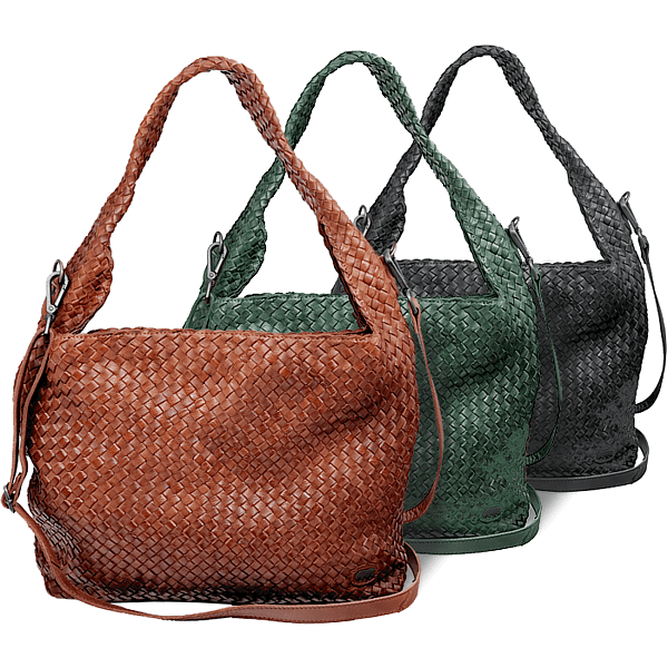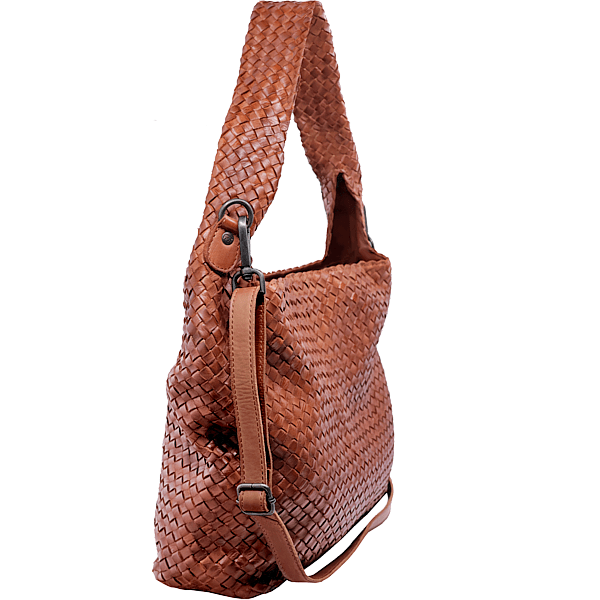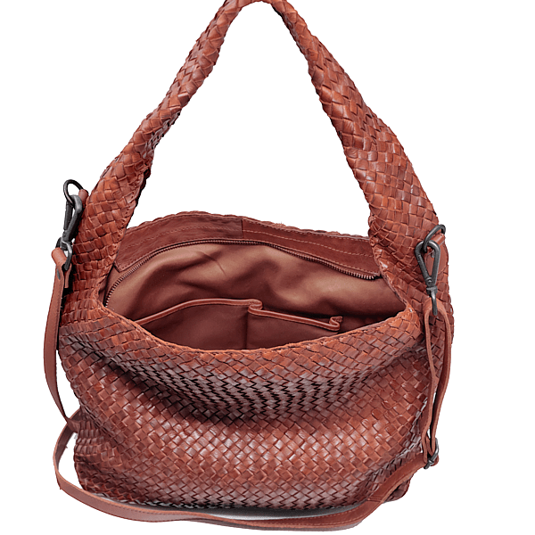 innen 2 teilig, Steck- und Handyfach, Reissverschlussfach, Tragegriffe und abnehmbares Schulterband, pflanzlich gegerbtes Vollrindleder, geflochten