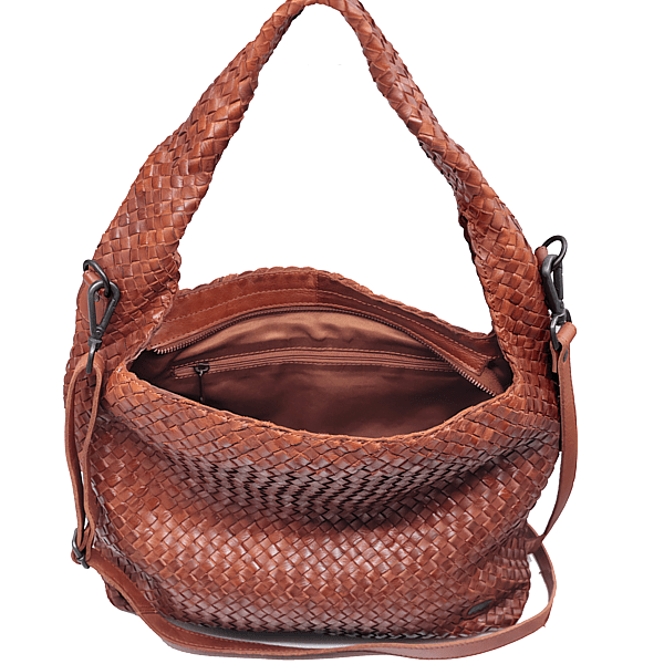 innen Reissverschlussfach, Steck- und Handyfach, pflanzlich gegerbtes Vollrindleder, geflochten