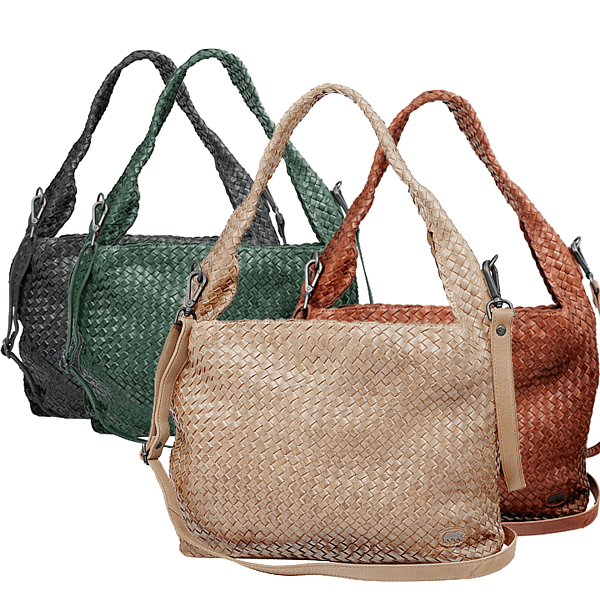 innen 2 teilig, Steck- und Handyfach, Reissverschlussfach, Tragegriffe und abnehmbares Schulterband, pflanzlich gegerbtes Vollrindleder, geflochten