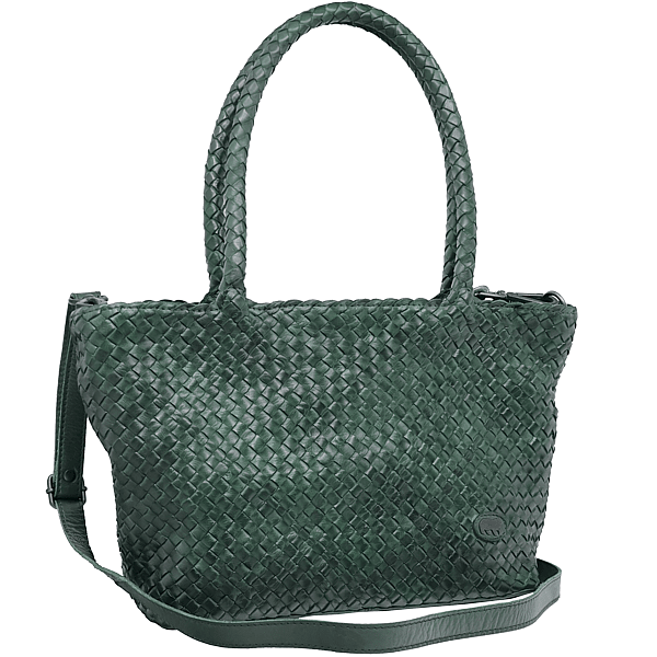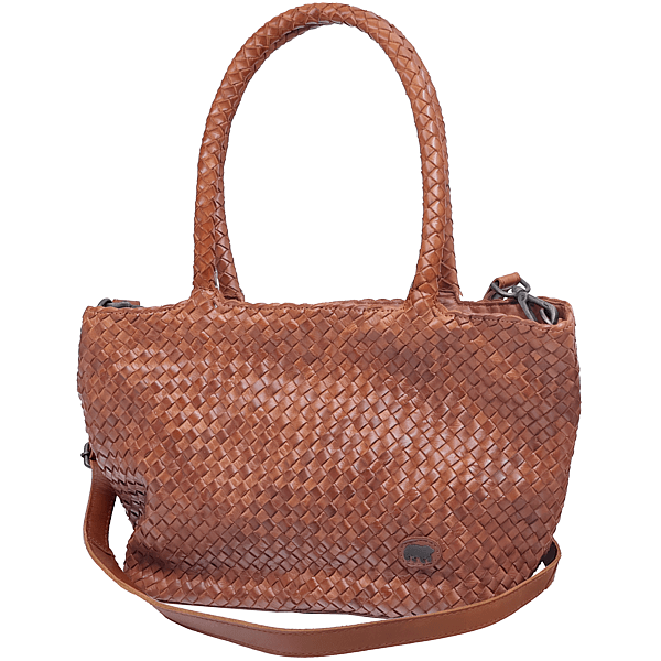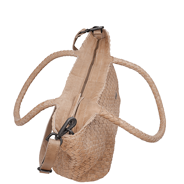 Steckfach, Handyfach und Reissverschlussfachinnen, Schultertrageschlaufe und abnehmbares Schulterband, pflanzlich gegerbtes Vollrindleder, geflochten