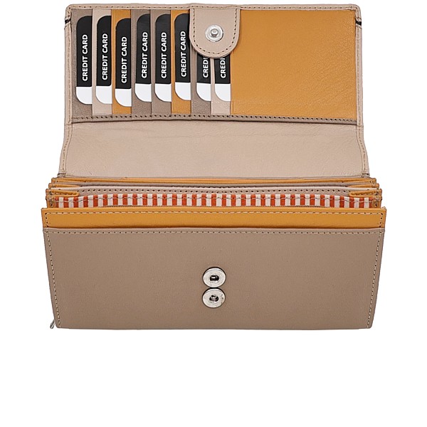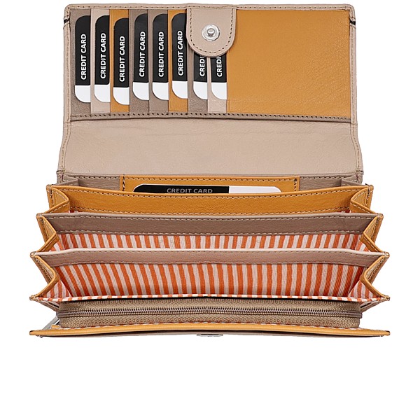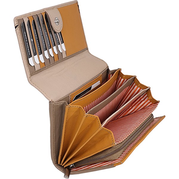 14 Kartenfächer RFID safe, 2 tlg. Reissverschlussfach, 2 grosse Fächer, 3 Steckfächer, Rindleder, in 6 Farbkombinationen