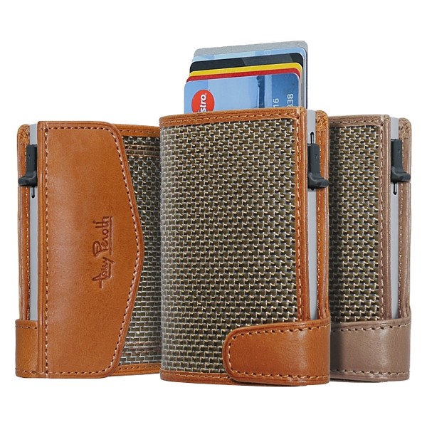 Cardholder mit Spenderfunktion für bis zu 7 Karten, Etui aus echtem Titanium Fibre, mit Noten- + Kartenfach, RFID safe