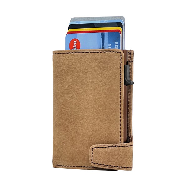 Cardcase mit Spenderfunktion RFID safe für bis zu 6 Karten, Lederetui mit Notenfach + 3 Kartenfächern, gewaschenes Vollrindleder, in 6 Farben
