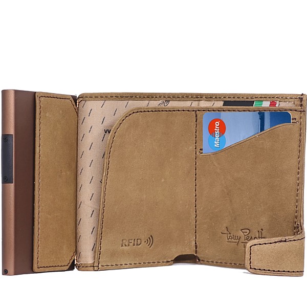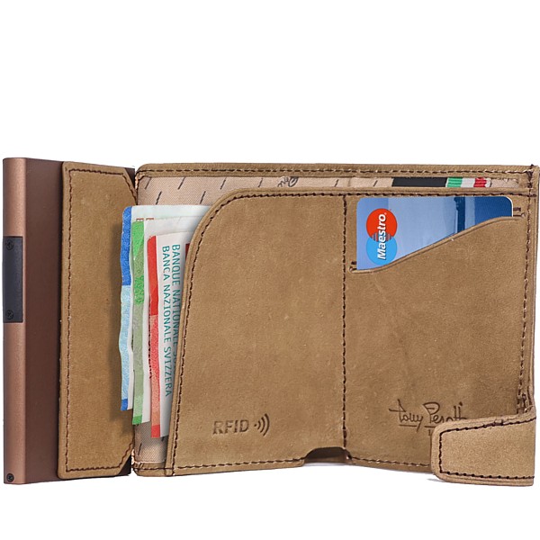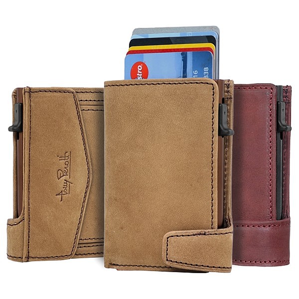für bis zu 8 Karten, RFID safe, mit Pull up System, pflanzlich gegerbtes italienisches Vollrindleder, in 3 Farben