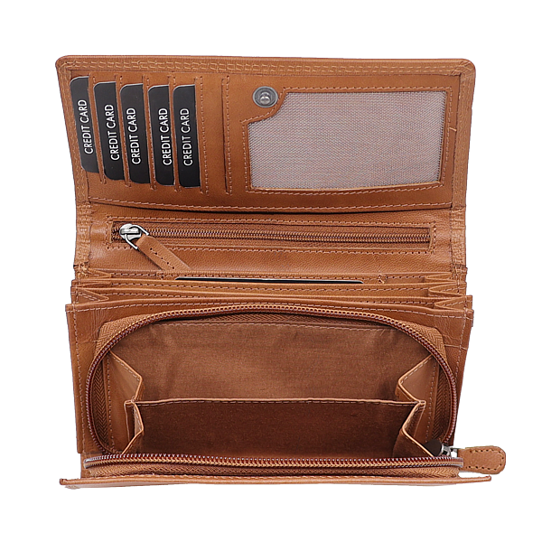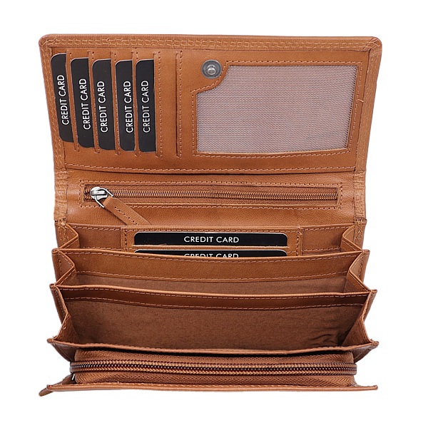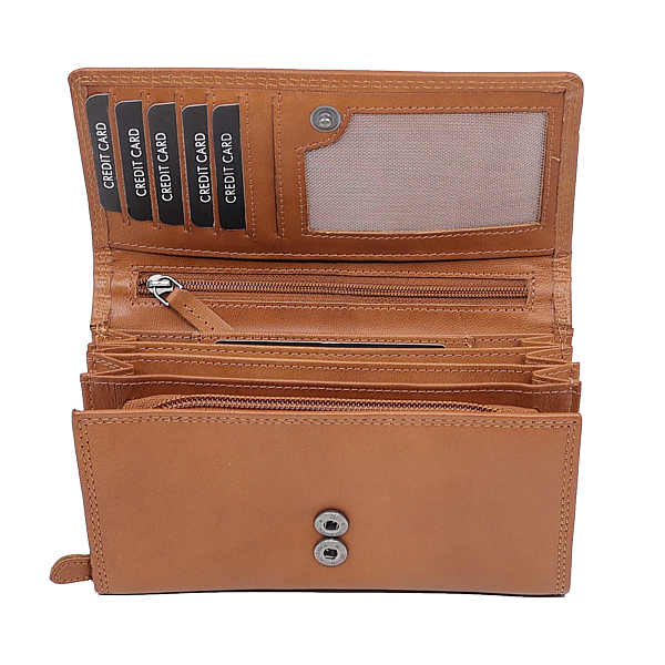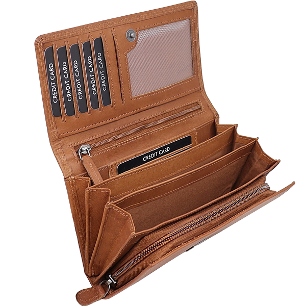 16 Kartenfächer, RFID safe, 2 Sichtfächer, 5 Steckfächer, Notenfach, 2 teiliges Reissverschlussfach, naturbelassenes, leicht gewachstes Ziegenleder
