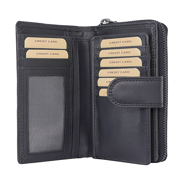 8 Kartenfächer, RFID safe, 3 grosse Fächer, 3 Steckfächer, 2 teiliges Reissverschlussfach, naturbelassenes, leicht gewachstes Ziegenleder