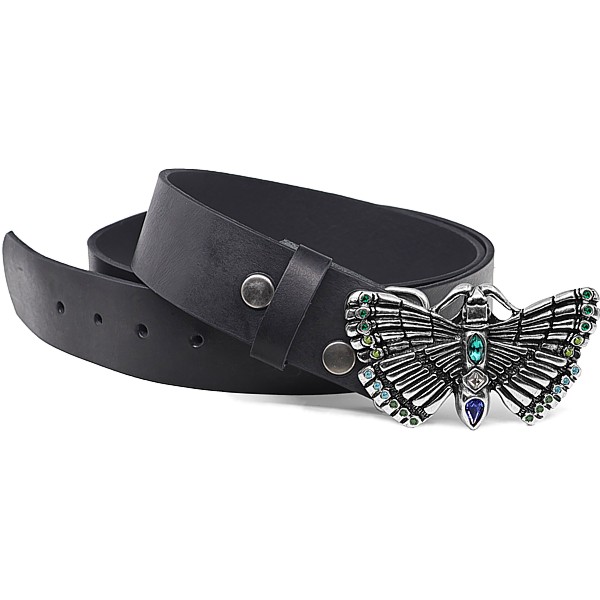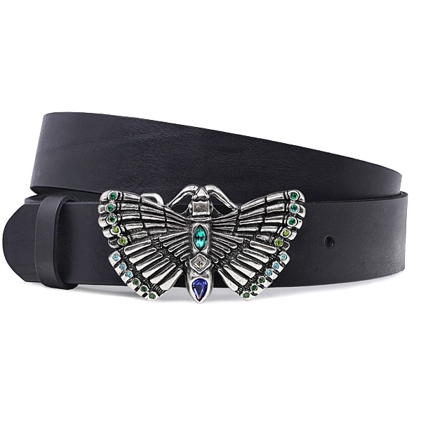 Breite 4cm, Wechselgürtel mit Druckknöpfen, Schnalle mit Strasssteinen, Vollrindleder, schwarz