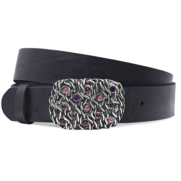 Breite 4cm, Wechselgürtel mit Druckknöpfen, Schnalle mit grossen Strasssteinen, Vollrindleder, schwarz