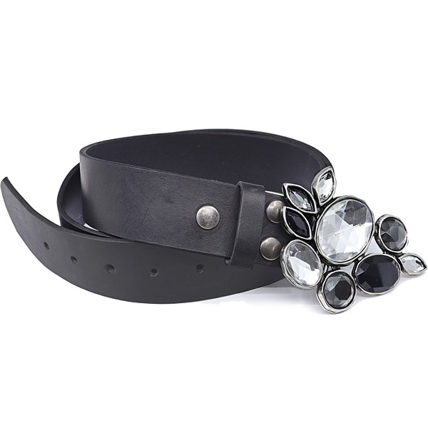 Breite 4cm, Wechselgürtel mit Druckknöpfen, Schnalle mit Strasssteinen, Vollrindleder, schwarz