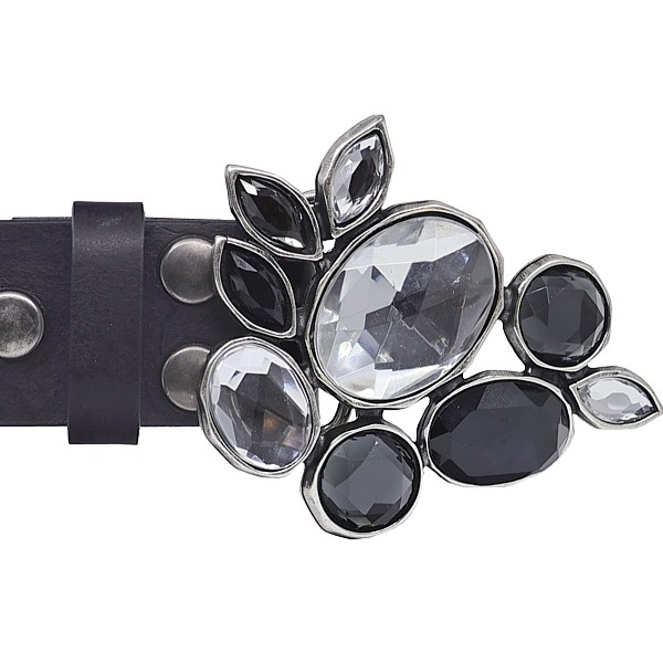 - 3D Schnalle aus massivem Guss mit grossen schwarz und weissen Strasssteinen