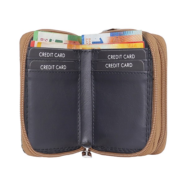 innen 2 teilig, 4 Kartenfächer, 2 Steckfächer, Reissverschlussfach, Kork in rosy brown und natur