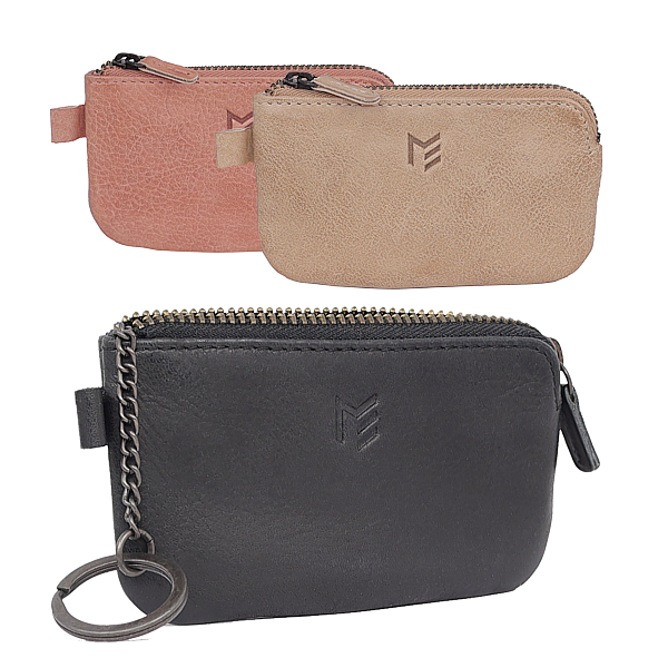 Reissverschlussfach aussen, 2 Schlüsselringe an Ketten, Vollrindleder