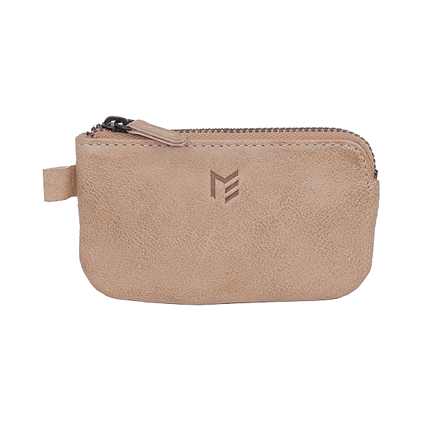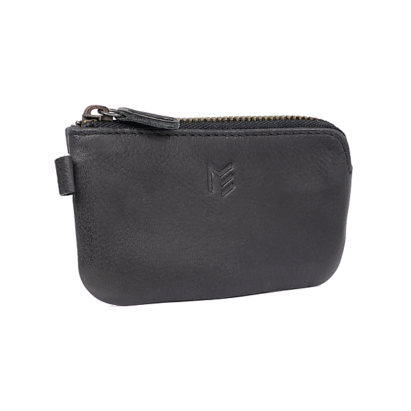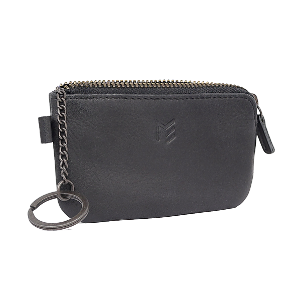 2 Schlüsselringe, Reissverschlussfach in Kartengrösse, bedrucktes Vollrindleder