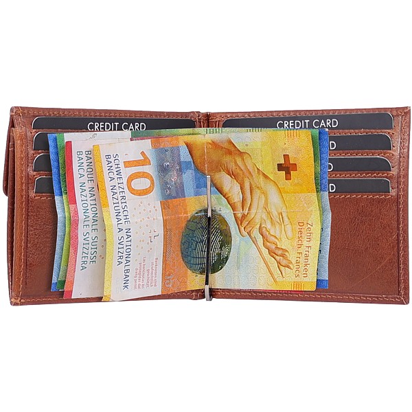 7 Kartenfächer, Chästli-Münzfach, RFID safe, 2 Steckäfcher, 2 Notenfächer, pflanzlich gegerbtes Vollrindleder