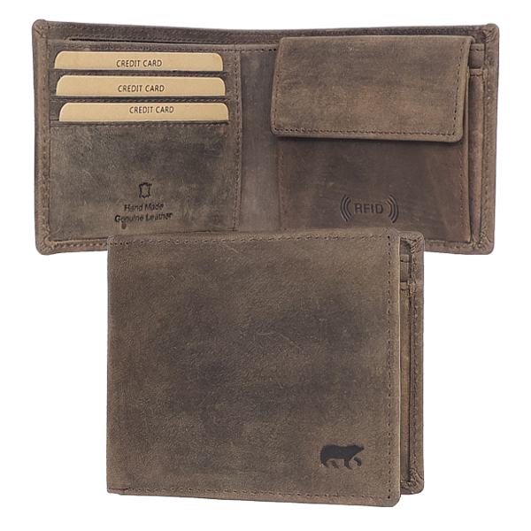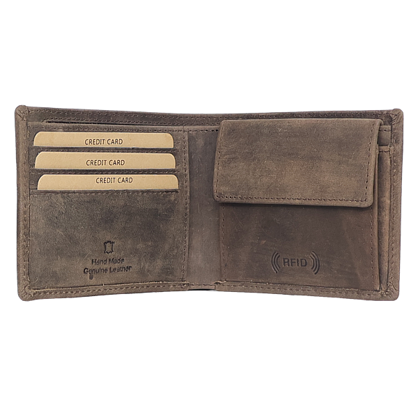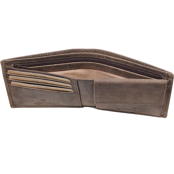 3 Kartenfächer RFID safe, 2 Steckfächer, naturbelassenes, geschliffenes Rindleder, im Vintage Look, braun