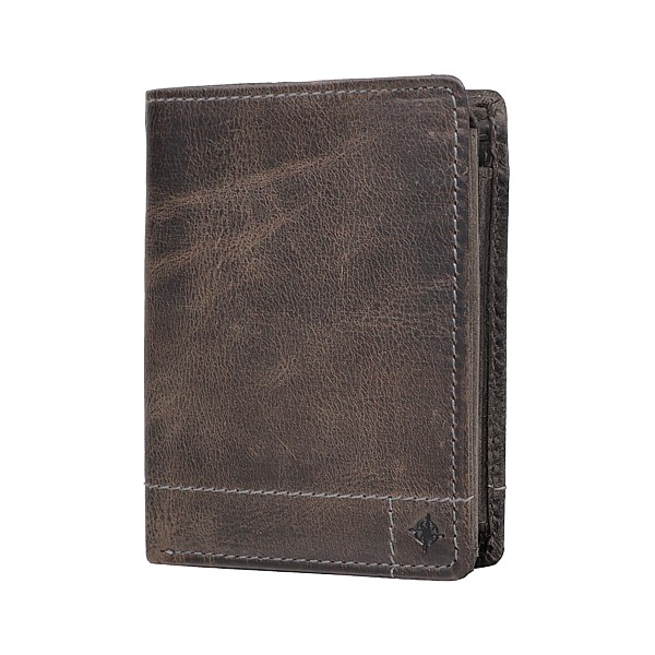 7 Kartenfächer, 3 Sichtfächer, Reissveschlussfach, geöltes Vollrindleder, im vintage Look, in braun und grau