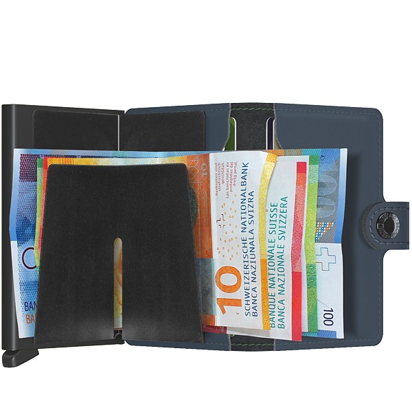 Mit dem Aluminium Cardprotector als Basis ist das Miniwallet ein sehr kompaktes und sicheres Portemonnaie.