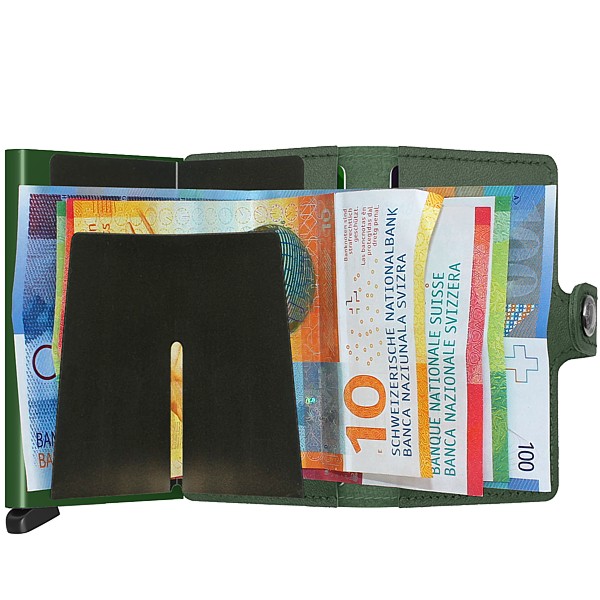 Mit dem Aluminium Cardprotector als Basis ist das Miniwallet ein sehr kompaktes und sicheres Portemonnaie.