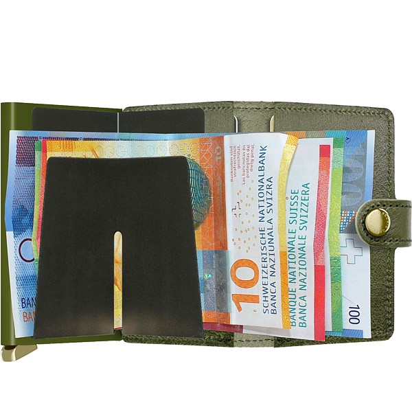 Das Leder Etui bietet zusätzlich Platz für 2 - 4 weitere Karten und verfügt über ein Fach für Noten oder Belege.