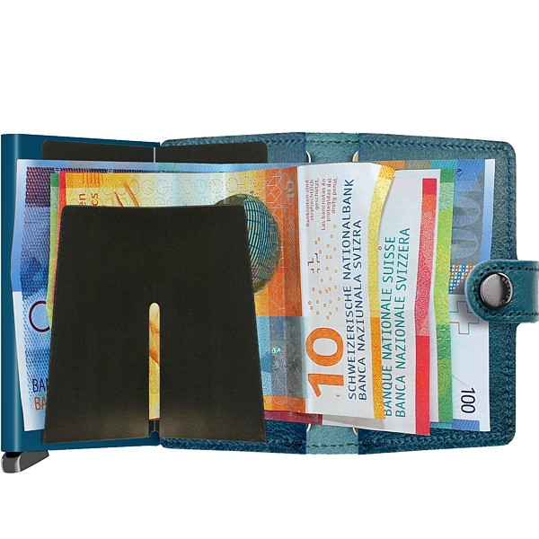 Das Leder Etui bietet zusätzlich Platz für 2 - 4 weitere Karten und verfügt über ein Fach für Noten oder Belege.