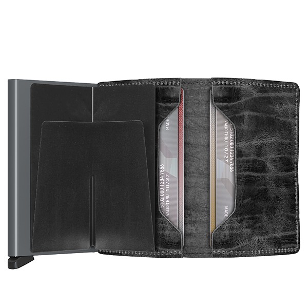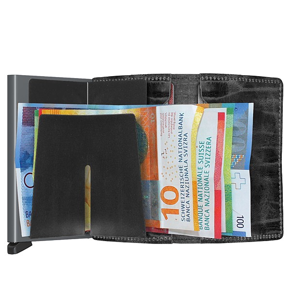 Mit dem Aluminium Cardprotector als Basis ist das Slimwallet ein sehr kompaktes und sicheres Portemonnaie.