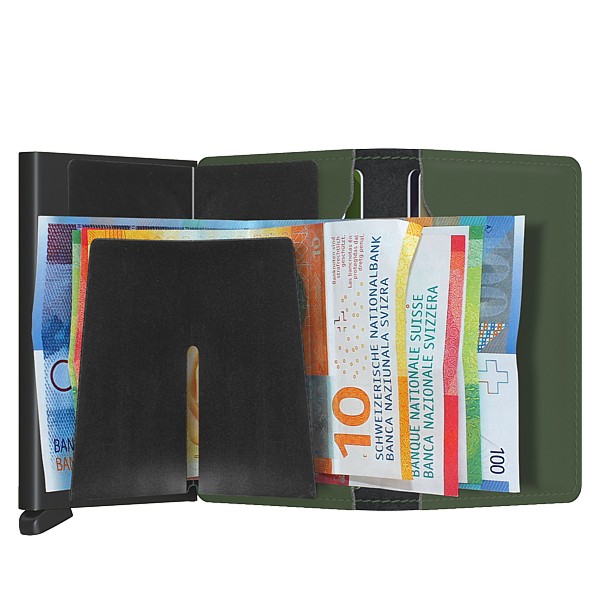 Mit dem Aluminium Cardprotector als Basis ist das Slimwallet ein sehr kompaktes und sicheres Portemonnaie.