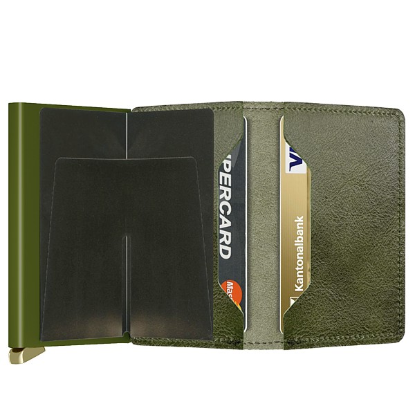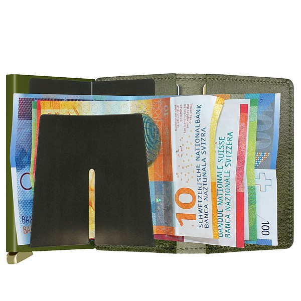Carprotector RFID safe für bis zu 6 Karten, innen Notenfach, 2 Kartenfächer im Lederetui, pflanzlich gegerbtes Vollrindleder, Metall Hebel